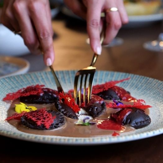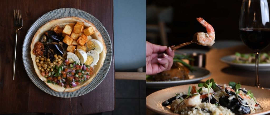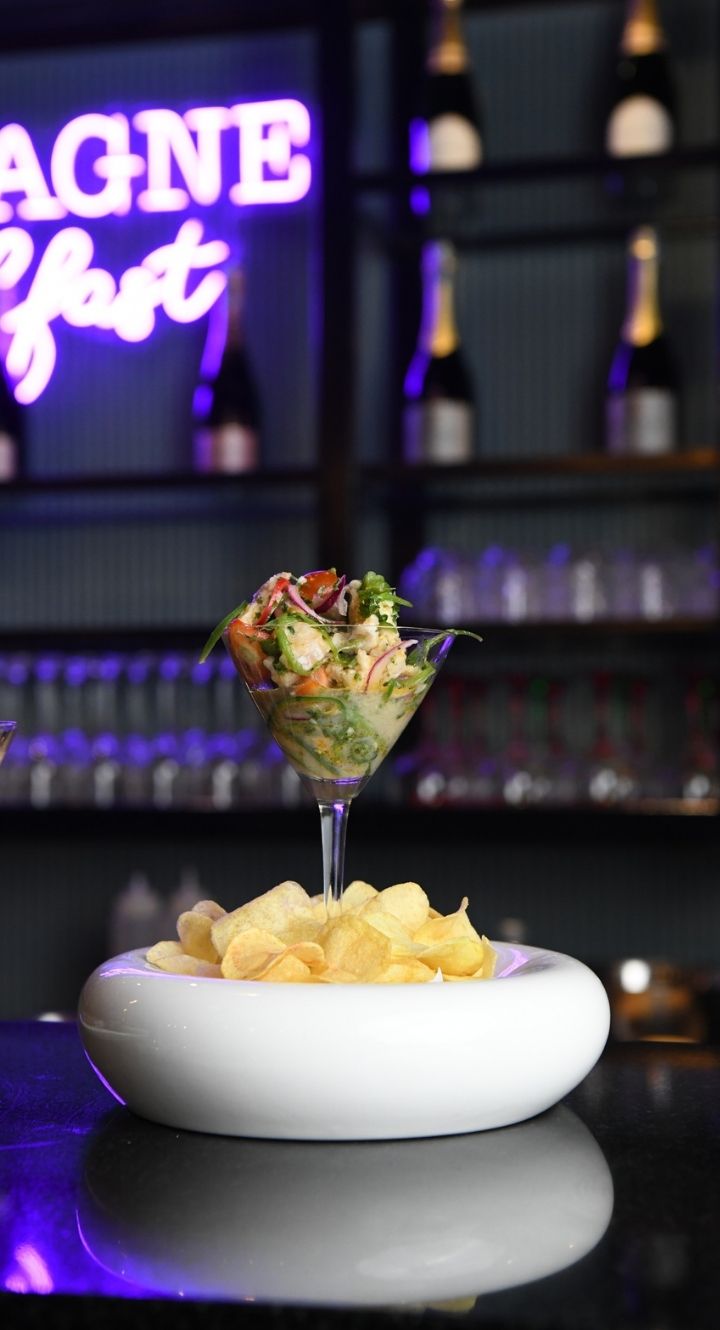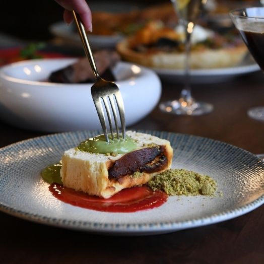 The interior is thoughtfully designed to provide a cozy yet upscale atmosphere, perfect for intimate dinners or lively gatherings. The space is further elevated by a private dining nooks, live music, and ensuring a welcoming experience for all guests.